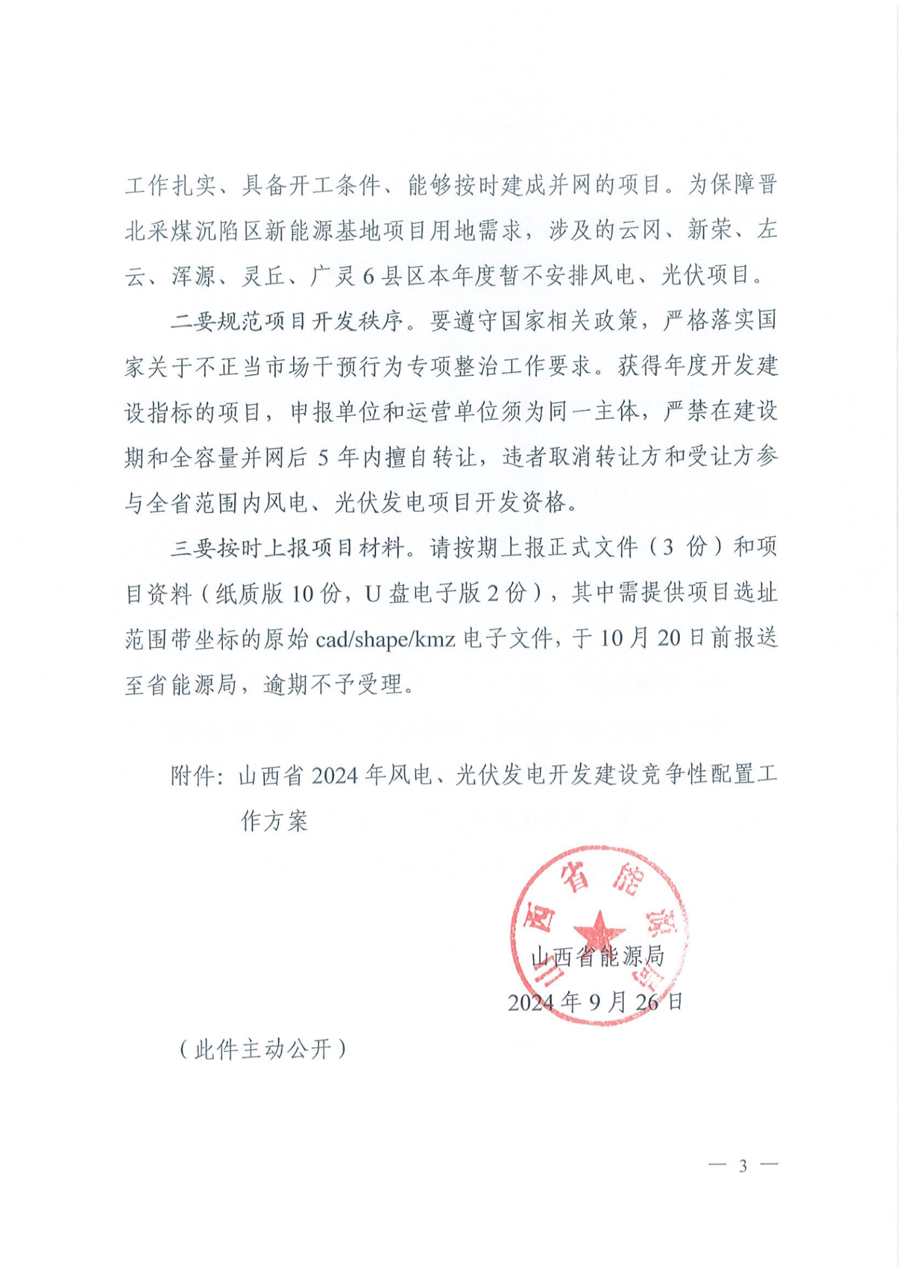山西省能源局下发《关于做好2024年风电、光伏发电开发建设竞争性配置有关工作的通知》,文件提出: