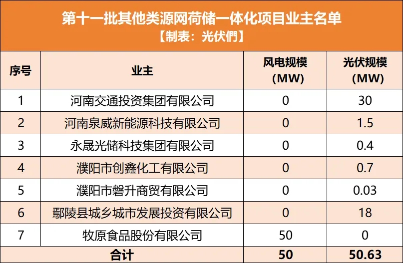 河南公示第11批451MW源网荷储一体化项目清单:华能、河南交投、周口润博、牧原食品等入围