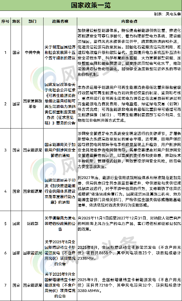 55条!2025年10月风电政策汇总:“136号文”承接文件、驭风行动、风电核准、风电配储等相关政策