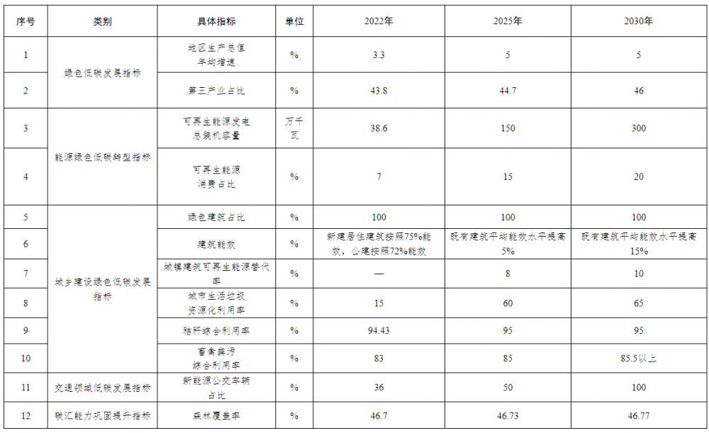 黑河市国家碳达峰试点城市建设指标