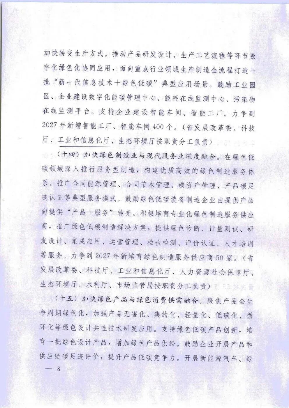 《措施》提出要提升绿色制造基础支撑能力,加强关键核心技术攻关,力争到2027年,完成30个绿色低碳标准制修订,推广绿色低碳技术100项,新增绿色工厂500家。